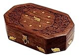 Handcrafted Wooden Jewelry Keepsake Trinket Box Home Decor Storage Box with Brass Elephant Inlays