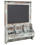 MyGift Rustic Dark Brown Wood Wall Mounted Mail Sorter Key Hook Organizer Rack w/Memo Bulletin Chalkboard Sign