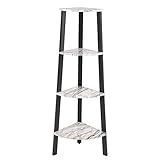 VASAGLE Corner Shelf, 4-Tier Display Shelf Bookshelf, Plant Stand for Home and Office, Faux Marble with Metal Frame ULLS34BW